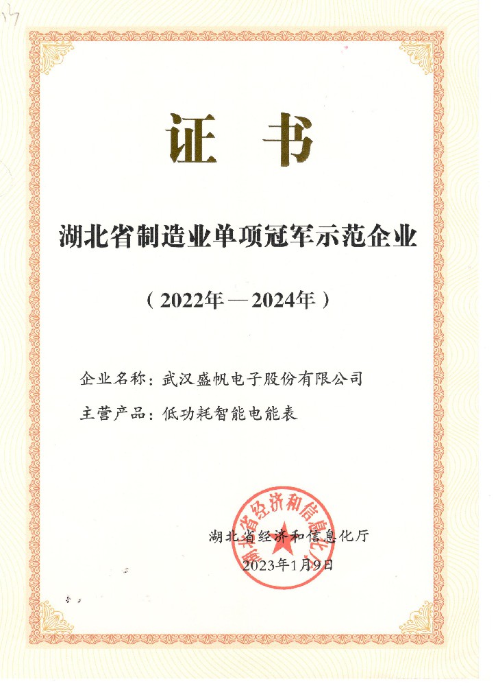 湖北省制造业单项冠军示范企业
