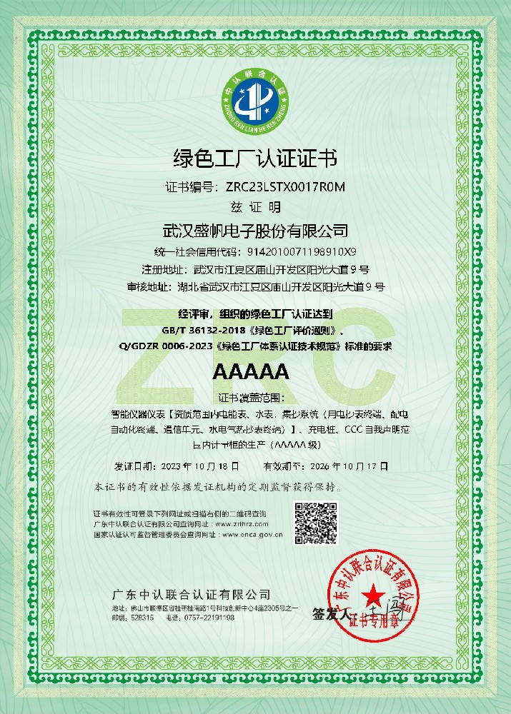 绿色工厂认证证书